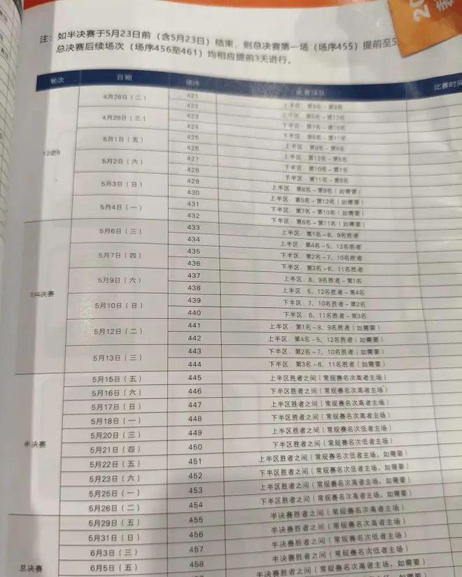 根据CBA官方赛程安排,季后赛将于4月28日正式打响,最迟持续至6月14日收官。本轮最大调整在于八强晋级阶段——由原先五局三胜制压缩为三局两胜制。